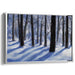 Step into the serene beauty of 'Winter's Silent Embrace: Serene Snow-Covered Forest Landscape,' a mesmerizing canvas art that transports you to a tranquil winter forest. The artwork depicts towering trees cloaked in snow, casting intricate shadows on the untouched snowy ground, creating a scene of serene stillness.
