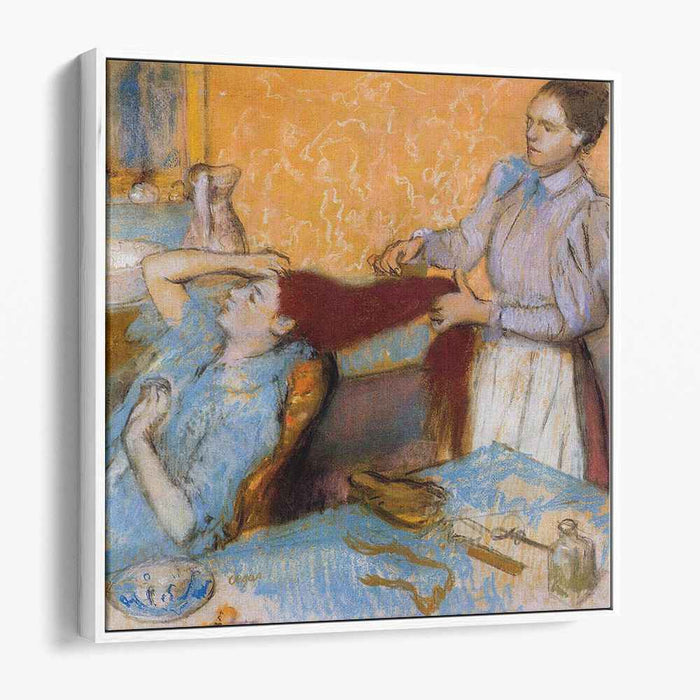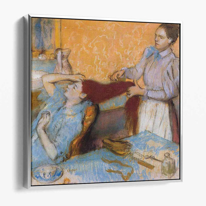Unveil the captivating world of Edgar Degas' "Woman Having Her Hair Combed" (1895), now brought to life on a high-quality canvas. This intimate portrayal of a woman's private moment invites you to witness the subtle gestures and unspoken connections that define human relationships.
