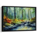 Step into the enchanting world of 'Woodland Whisper,' a mesmerizing canvas art print that immerses viewers in the heart of a lush, mystical forest. This artwork beautifully captures a serene stream meandering through a dense woodland, shrouded in a misty, ethereal ambiance.