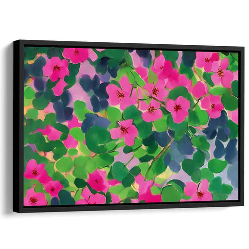 Blossom Dance of Spring: Vibrant Pink and Green Floral Canvas Art Print