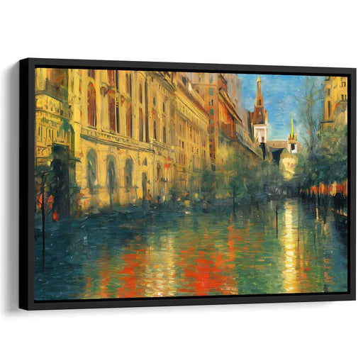 Twilight Urbanscape: Impressionist Cityscape Evening Canvas Art Print