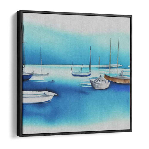 Sail Through Solitude: Minimalist Blue Boat Scene Canvas Art Print