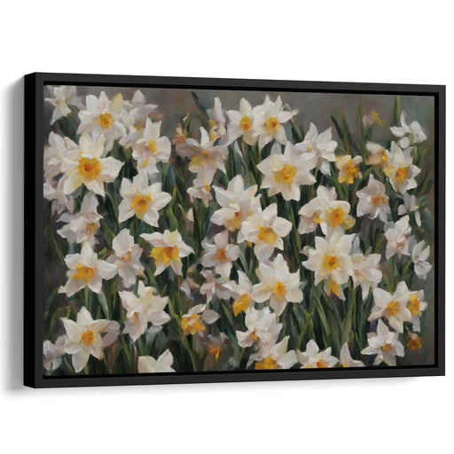 Whispers of Winter Blooms: White Daffodils on Grey Canvas Art Print