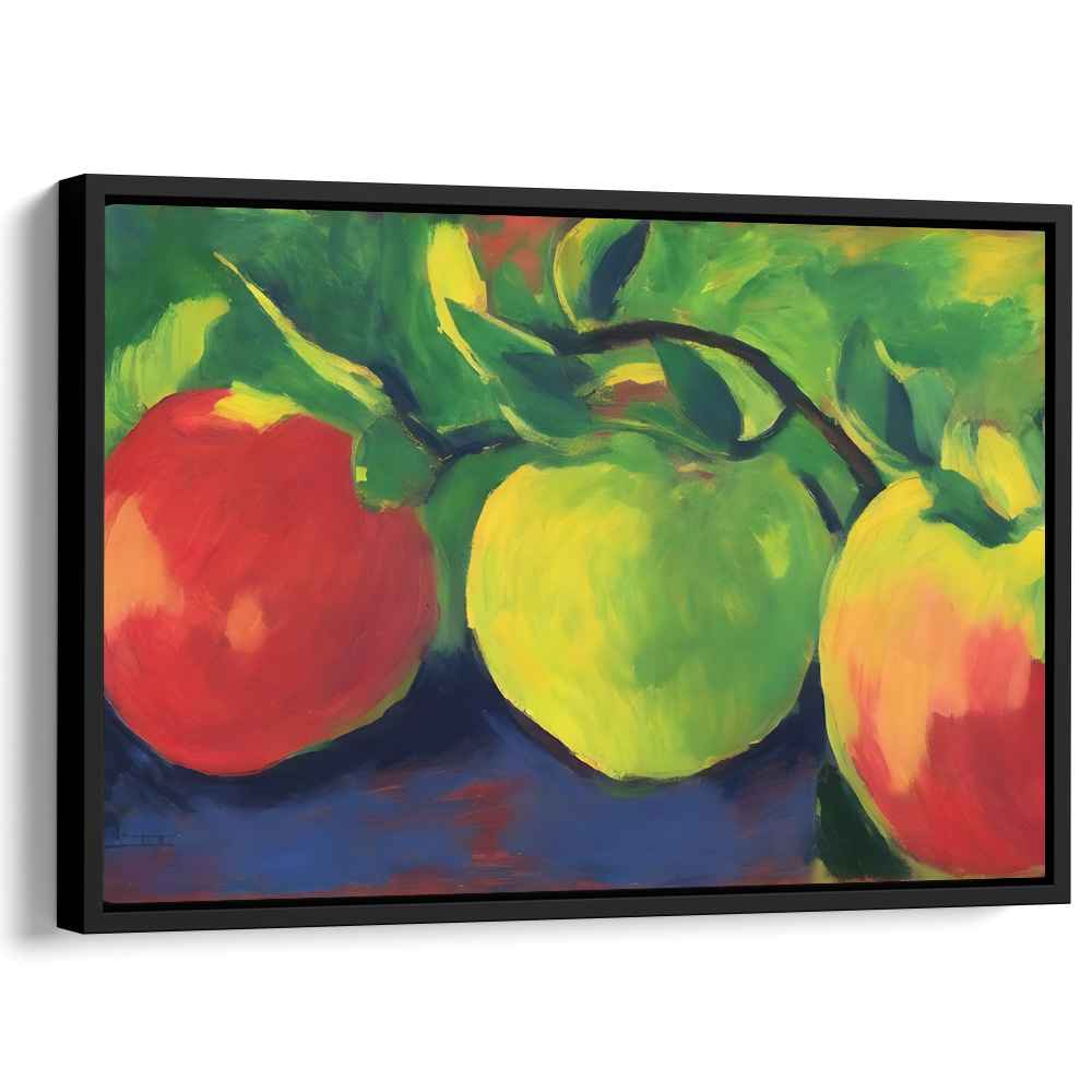 Crimson Orchard Whispers: Vibrant Apple Still Life Canvas Art