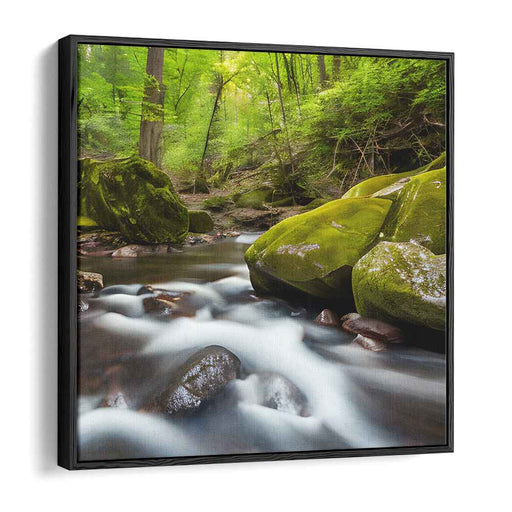 Mossy Cascades Reverie: Lush Forest Waterfall Canvas Art