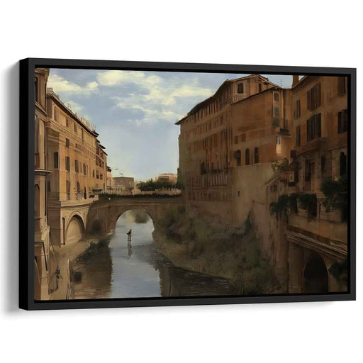 Golden Bridges at Sunset: Impressionist European Cityscape Canvas Art Print