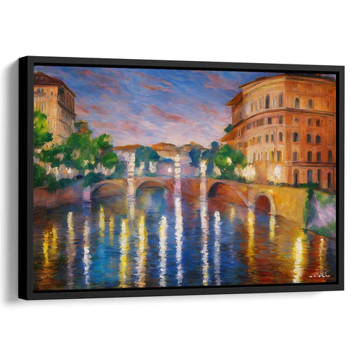 $134.00 CAD $192.00Introducing "Urban Echos," a mesmerizing canvas art print that transports viewers to a serene riverside scene enveloped in the warm embrace of twil...