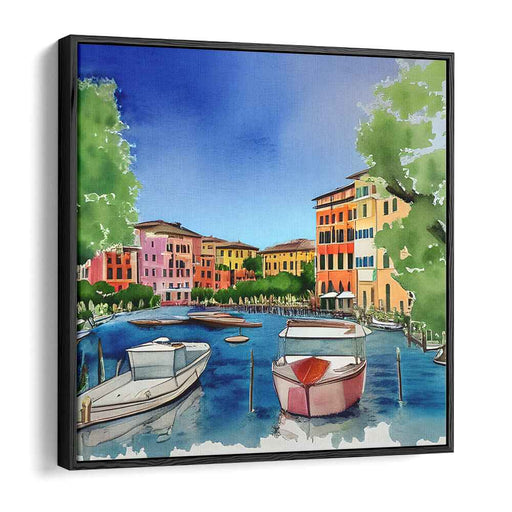 Mediterranean Escape: Vibrant Watercolor Marina Scene Canvas Art