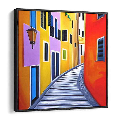 Vibrant Mediterranean Alley: Contemporary Fauvist Street Scene Canvas Art Print