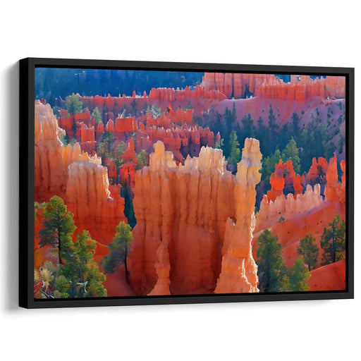 Whispering Evergreens Aglow: Vibrant Hoodoos and Pine Canvas Art Print