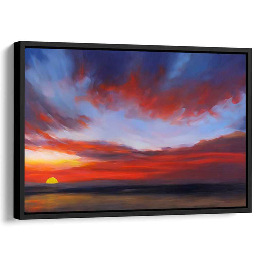 Dusk Horizon Serenity: Impressionist Sunset Over Tranquil Ocean Canvas Art Print