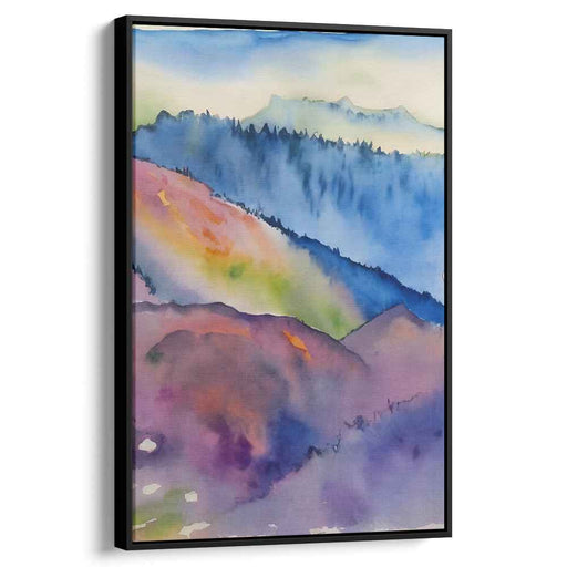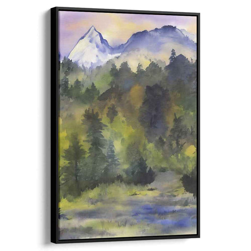Blissful Peaks Watercolor: Serene Mountain Landscape Watercolor Art Print