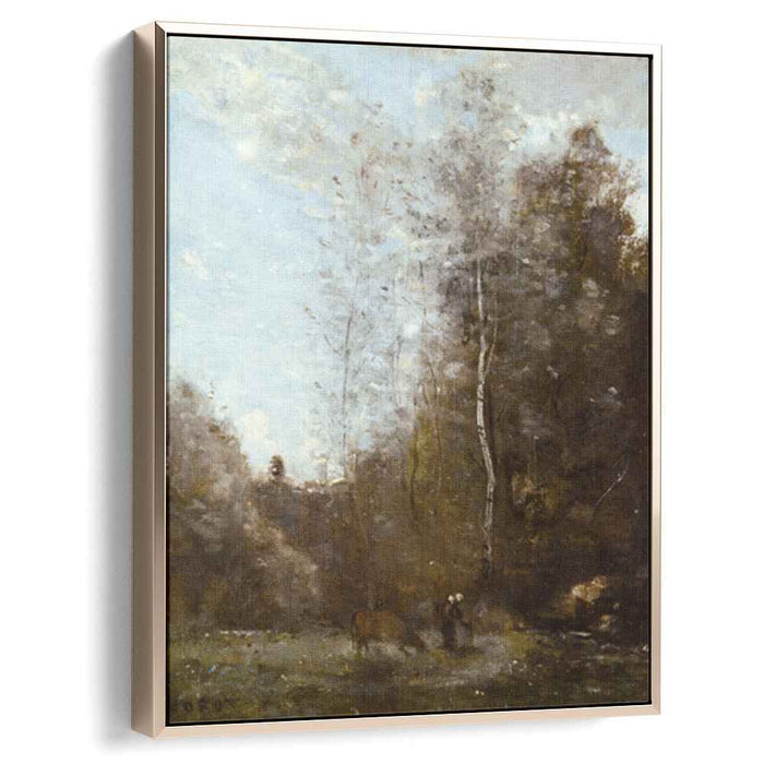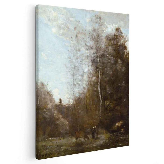 Step into the idyllic world of Camille Corot's "A Cow Grazing beneath a Birch Tree" (1870), now available as a stunning canvas print. This serene masterpiece invites you to pause, breathe, and immerse yourself in the tranquility of nature's embrace.