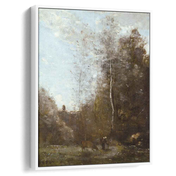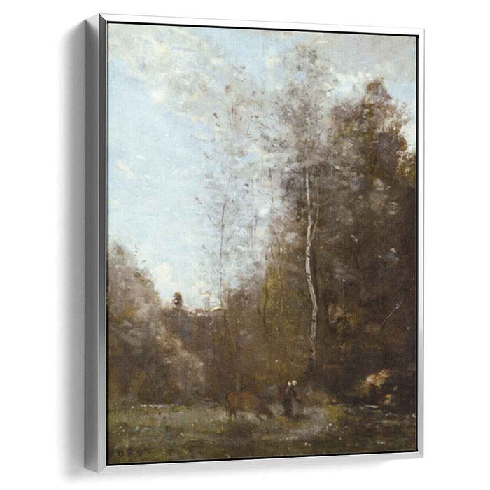 The painting depicts a peaceful meadow, where a solitary cow grazes beneath the shade of a graceful birch tree. The cow's gentle posture and the stillness of the surroundings convey a sense of tranquility and contentment. Corot's ability to capture the essence of rural life invites viewers to escape into a world of serenity and simplicity.