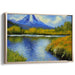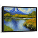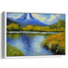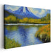 Introducing the enchanting "Aether Flow" canvas art print, a mesmerizing landscape painting that immerses viewers in a serene natural setting, dominated by a majestic snow-capped mountain that stands prominently against the sky. This captivating artwork skillfully captures the mountain's reflection in the tranquil waters of the lake, creating a stunning mirror-like effect that enhances the composition's depth and symmetry.