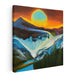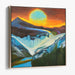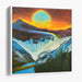 Introducing "Aqua Peaks Illusion: Surreal Mountain and Waterfall Landscape," a mesmerizing canvas art that transports viewers into a realm where reality blends seamlessly with fantasy. This captivating artwork captures a surreal landscape where a colossal, luminous sun takes center stage, illuminating the entire scene with its intense radiance.