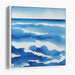 The primary color palette of soothing blues dominates the scene, instilling a profound sense of peace and tranquility. Complemented by hues of white and light blues representing frothy wave crests and subtle water gradients, the artwork invites viewers to immerse themselves in the ebb and flow of the ocean's rhythm.