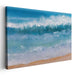 The artist skillfully employs various shades of blue in this piece, ranging from deep navy to translucent aquamarine, creating a sense of depth and motion in the artwork. Complemented by soft whites of frothy wave crests and warm sandy tones of the beach, the color palette brings balance and contrast to the composition, evoking the vastness of the ocean.