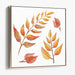 The primary colors of rich oranges and yellows, complemented by secondary tones of red and brown, harmoniously blend to create a visually striking yet soothing composition. The artist's use of a watercolor technique infuses the piece with fluidity and transparency, allowing the colors to meld softly, enhancing the natural beauty of the leaves' intricate shapes and subtle color gradients.