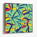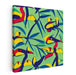 Step into the lively and vibrant world of 'Avian Colorful Chaos,' an enchanting canvas art print that effortlessly transports you to a tropical paradise within your own space. This captivating artwork showcases a dynamic and playful composition of abstract bird shapes intricately woven with lush, stylized foliage.