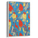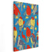 Introducing 'Avian Symphony in Blue,' a captivating canvas art print that brings a vibrant and playful assembly of birds to life in a bold, graphic style that is sure to uplift the spirit and enliven any space. This delightful artwork showcases a variety of bird species, each depicted with a simplicity that accentuates their unique colors and forms against a striking cerulean blue background.