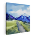 Introducing 'Azure Mountain Mirage: Serene Watercolor Landscape of Blue Mountains,' an enchanting piece that transports viewers into a peaceful and contemplative natural setting. This captivating artwork features a meandering path that guides the gaze through a lush, verdant meadow towards the grandeur of distant, azure-hued mountains. The sky above transitions in a gentle gradient of soothing blues, hinting at the tranquility of early morning or the serenity of late afternoon.