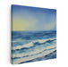 Introducing "Calm Aquatic Serenity," a mesmerizing watercolor canvas art print that encapsulates the tranquil and majestic allure of the ocean. This captivating piece portrays a serene seascape, where gentle waves embrace the shore beneath a vast, open sky. The horizon is bathed in the soft, golden light of the setting sun, casting a warm radiance that beautifully contrasts with the cool tones of the sea and sky.