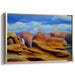 Dominated by warm, earthy tones of amber, ochre, and sienna, this canvas print captures the essence of nature's rich palette. The serene azure sky provides a perfect backdrop, beautifully contrasting with the majestic rock formations that stand like sculptures in the landscape. The smooth, undulating surfaces of the rocks evoke a timeless grandeur and natural beauty that is both captivating and soothing.