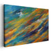 The artwork's primary palette features vivid blues and oranges, creating a visually striking contrast that infuses the composition with depth and intensity. Complementing these dominant hues are subtle touches of green, yellow, and white, harmoniously blended to elevate the overall visual impact, evoking a sense of harmony amidst the dynamic color play.