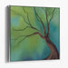 The artwork features a solitary tree with delicate, bare branches reaching out against a softly blended background of calming green and blue hues. The seamless gradient effect transitions from lush green to deep blue, infusing the scene with a profound sense of peace and natural harmony. The tree itself is depicted in earthy browns, meticulously crafted to convey the texture and gentle movement of the branches swaying in a soft breeze.