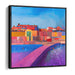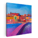 Introducing 'Chromatic Landscape Abstraction: Colorful Abstract Landscape,' a striking canvas art piece that captures the essence of a lively coastal village in a contemporary and vibrant style. Immerse yourself in a riot of colors that breathe life and energy into this picturesque scene.
