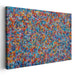 Introducing "Chromatic Symphony Kaleidoscope," a mesmerizing abstract expressionist color mosaic canvas art print that immerses viewers in a vibrant symphony of colors and intricate patterns. This captivating artwork features a rich blue backdrop, densely populated with small, rectangular brushstrokes in vivid orange, bright red, sunny yellow, and deep purple, creating a complex and dynamic composition.