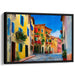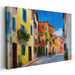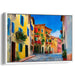 Introducing the enchanting "City Mosaic" canvas art print, a lively and vibrant depiction of a picturesque street scene in a Mediterranean town. This artwork radiates warmth and cheer, capturing the essence of a sun-soaked day where shadows dance playfully, enhancing the vivid atmosphere of the setting.