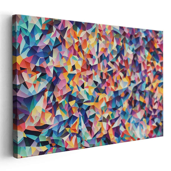 Introducing "Colorful Geometric Symphony: Vibrant Abstract Polygonal Canvas Art," a mesmerizing composition that immerses viewers in a whirlwind of colors and geometric intricacies, offering a dynamic and visually stimulating experience. This artwork is a symphony of polygonal shapes meticulously interlocking to form a mesmerizing mosaic that effortlessly guides the observer's gaze through a labyrinth of vibrant hues.