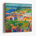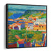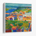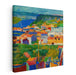 Introducing "Colorful Urban Symphony," a mesmerizing townscape canvas art print that captures the essence of a bustling coastal town in a symphony of vibrant colors and dynamic brushstrokes. This artwork pulsates with life, immersing viewers in the serene yet lively ambiance of a seaside community.