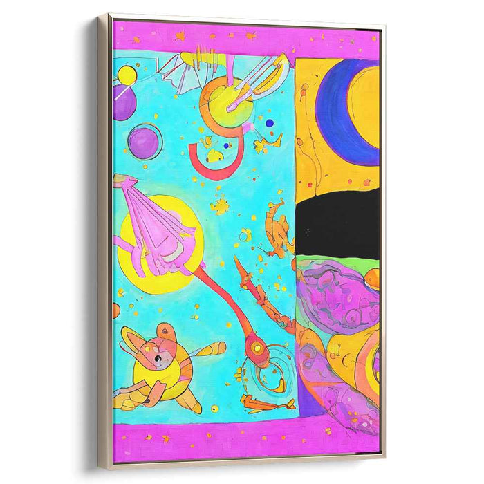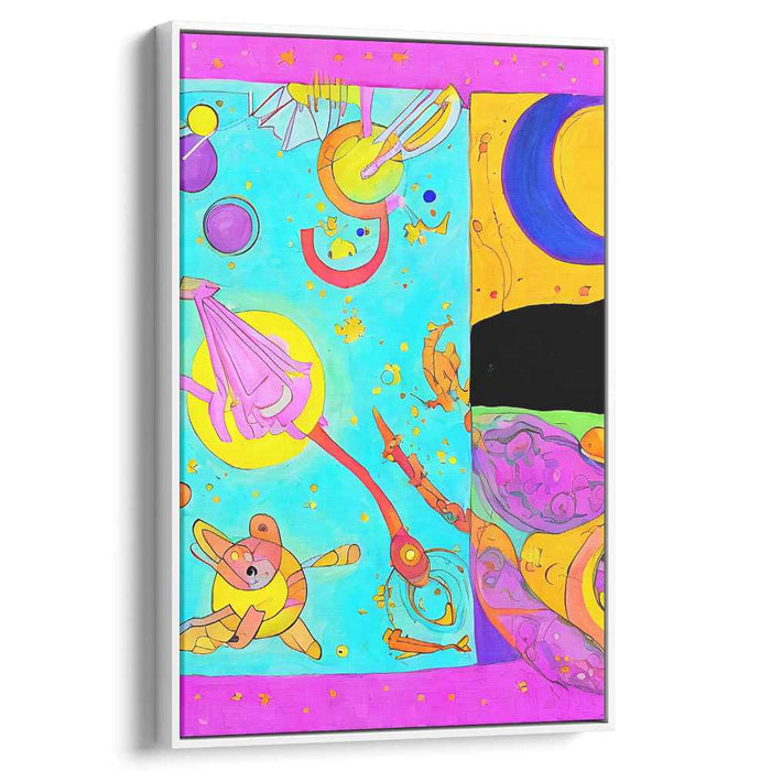 Immerse yourself in the world of 'Cosmic Canvas Abstraction,' where vibrant hues and whimsical forms converge to create a visual journey like no other. Elevate your space with this imaginative canvas art and let its joyful spirit inspire you to embrace the beauty of creativity and the wonders of the cosmos.