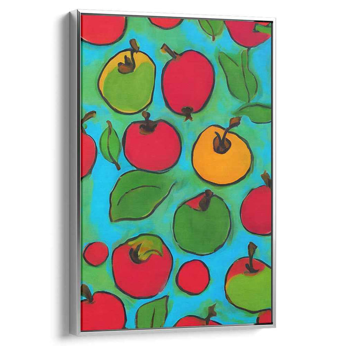 Step into the lively world of 'Crisp Harvest Symphony: Colorful Apple Medley on Canvas,' a radiant artwork that infuses your space with the vibrancy and freshness of nature. This captivating piece showcases a delightful assortment of apples, each bursting with vivid hues, set against a dynamic turquoise backdrop that electrifies the scene.