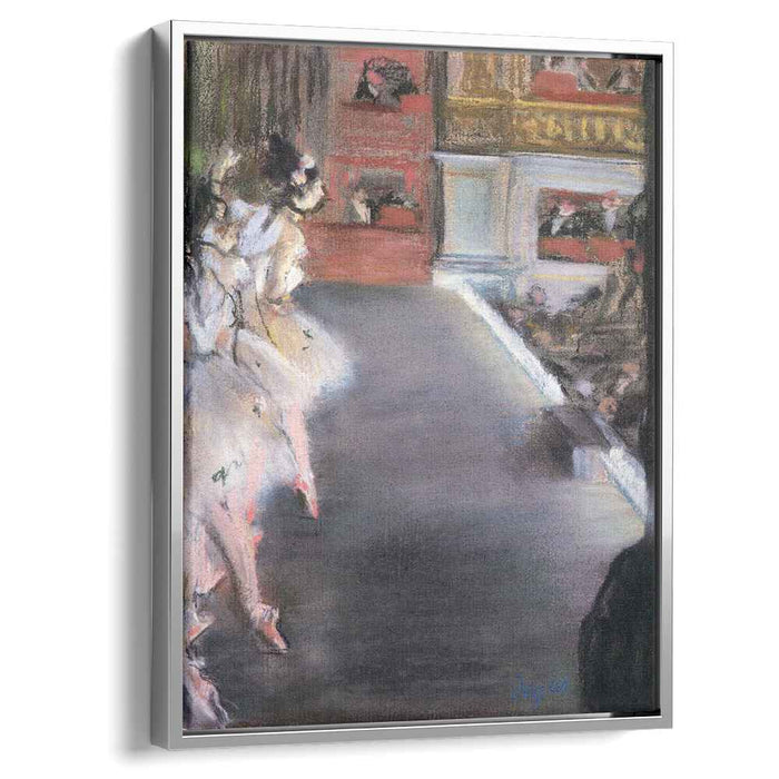 Step into the ethereal world of Edgar Degas' "Dancers at the Old Opera House," a captivating snapshot of the vibrant ballet culture that flourished in 19th-century Paris. This exquisite canvas print, meticulously crafted to replicate the original masterpiece, transports you to the bustling atmosphere of the opera house.