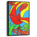 Introducing 'Dynamic Harmony Contrast,' an electrifying canvas art print that bursts with a kaleidoscope of colors and abstract shapes, captivating the viewer with its bold and dynamic composition. This artwork features a central abstract bird-like figure painted in a striking red hue, soaring amidst a sea of vibrant yellow. Surrounding the bird are playful elements like a blue fish-like shape gracefully swimming through the canvas and organic green structures that add a sense of fluidity and movement.