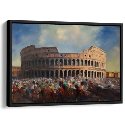 Introducing "Echoes of Glory: The Colosseum in Vivid Hues," a breathtaking canvas art print that encapsulates the grandeur of Rome's iconic Colosseum with vivid and expressive strokes. This remarkable artwork immerses viewers in the bustling activity around the ancient amphitheater, teeming with tiny, detailed figures that breathe life into the scene.
