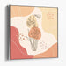 The central focus of the composition lies on the meticulously detailed flowers, exquisitely highlighted against a backdrop of abstract shapes in harmonious warm tones. The soft orange primary color exudes warmth and comfort, complemented by secondary hues of cream, dusty pink, and gray, adding depth and visual interest to the piece.