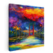 The artist's bold use of sweeping brushstrokes and palette knife technique results in a textured surface that exudes energy and movement. This technique is reminiscent of renowned artists like Leonid Afremov, known for their expressive use of color and impasto technique, adding a layer of artistic depth and complexity to the piece.
