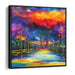 Introducing 'Ember Glow Crossing: Fiery Bridge at Sunset,' a mesmerizing canvas art that captures the essence of a dynamic city scene, featuring a striking bridge stretching over a serene body of water. This vivid artwork is a symphony of colors, with the sky above the bridge ablaze in fiery reds, oranges, and yellows, seamlessly blending into cooler tones of blue and purple, creating a captivating contrast.