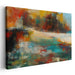 Introducing "Emotion Terrain," a mesmerizing abstract landscape canvas art that immerses viewers in a vibrant world of color and emotion. This captivating piece harmoniously blends dynamic brushstrokes and vibrant hues, creating a sense of movement and depth that is truly enchanting. The artwork predominantly features rich shades of orange and red, reminiscent of the fiery tones of autumn foliage, seamlessly transitioning into cooler blues and greens, symbolizing a tranquil body of water mirroring the landscape.