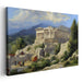 Step into the grandeur of ancient Greece with 'Eternal Glory Aglow,' a captivating canvas art print that transports viewers to the iconic Parthenon atop the Acropolis. Bathed in soft, golden light, the temple's classical architecture is meticulously detailed, showcasing its Doric columns and intricate pediments.