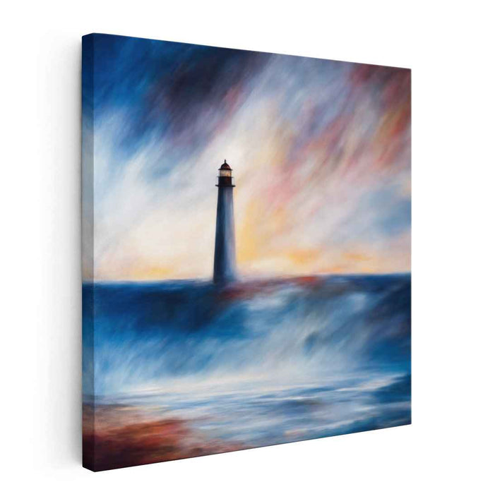 Introducing "Ethereal Beacon's Embrace," a mesmerizing seascape canvas art that captures the essence of a solitary lighthouse standing tall amidst a tumultuous sea and a dramatic sky. This captivating artwork symbolizes guidance and hope in the face of chaos, with the lighthouse painted in bold, dark strokes, serving as a beacon of light and stability.