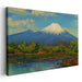 Introducing "Ethereal Frost Peak Odyssey: Serene Snow-Capped Mountain Landscape Canvas Print," a captivating artwork that immerses viewers in the serene grandeur of a snow-capped mountain reminiscent of Japan's iconic Mount Fuji. This masterpiece portrays the mountain standing tall against a vibrant blue sky, its peak adorned with pure white snow creating a striking contrast with the lush greenery below.