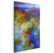 This abstract piece showcases masterful color blending and layering techniques, creating a dynamic and almost tangible depth that draws the eye into its intricate layers. The primary hue of rich blue is harmoniously complemented by bursts of orange, yellow, and green, adding layers of complexity and intrigue to the artwork.