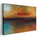 Introducing 'Ethereal Terrain Illusions: A Mesmerizing Abstract Landscape,' a captivating canvas art that immerses viewers in a world of fiery depths and tranquil blues, where the interplay of warmth and coolness creates a soul-stirring ambiance. The artwork features a horizon line that divides the canvas, with the upper section ablaze in a blend of orange, red, and yellow hues, evoking a dramatic sunset or emotionally charged sky. In contrast, the lower section mesmerizes with deep blues and hints of black, reflecting the sky's intensity in serene, shadowy waters.