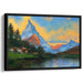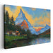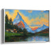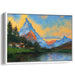 Introducing 'Ethereal Twilight Horizon,' a mesmerizing canvas art print that transports you to a world of serene beauty, where a majestic snow-capped mountain dominates the scene, reminiscent of the iconic Matterhorn, overlooking a tranquil lake. The artist's skill shines through in capturing the breathtaking essence of nature, with the mountain peaks bathed in the warm, golden hues of a setting sun, casting a serene reflection on the calm waters below.